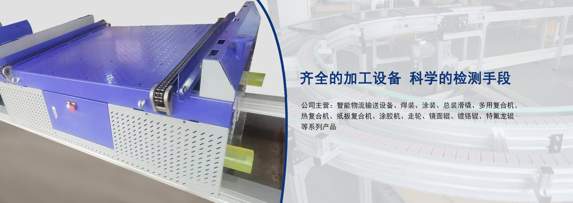 公司主營:智能物流輸送設備、焊裝、涂裝、總裝滑橇、多用復合機、熱復合機、紙板復合機、涂膠機、走輪、鏡面輥、鍍鉻輥、特氟龍輥等系列產品...